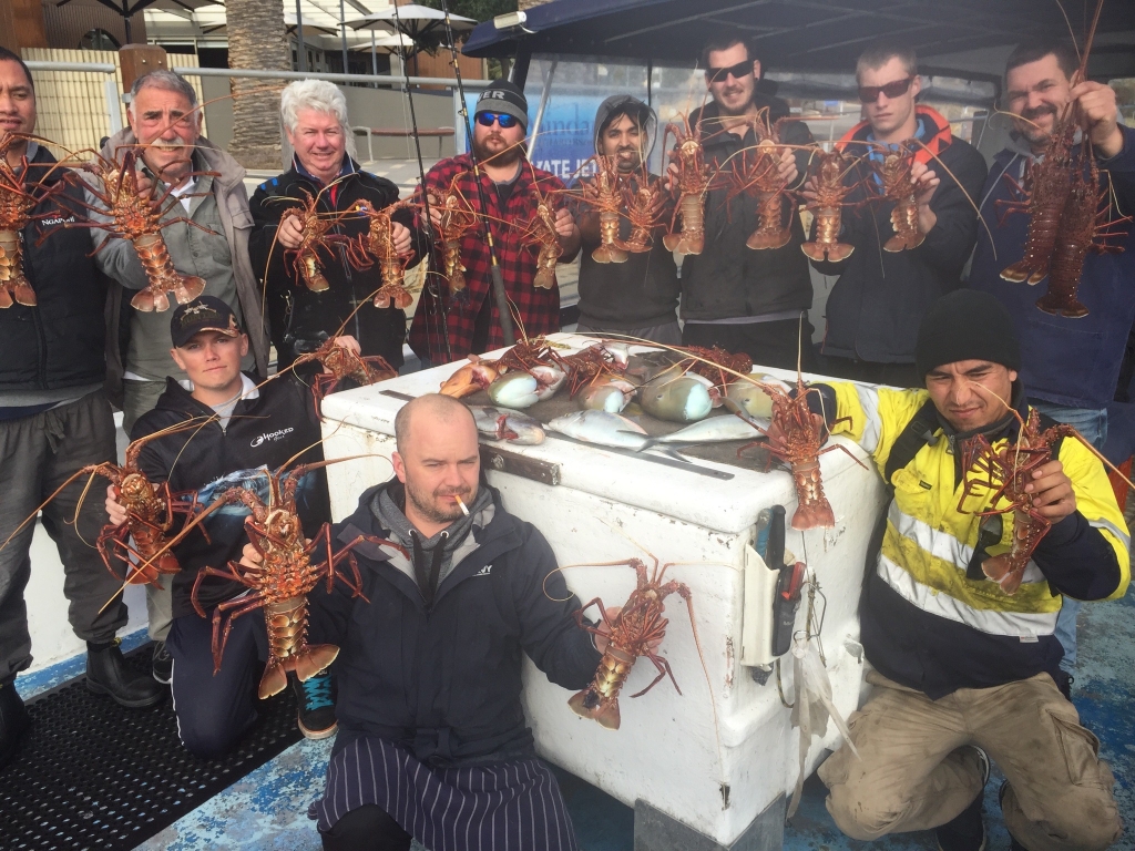 Under the new fishing laws, Fishing Charters in Perth can catch 24 crayfish per trip year round.  Everyone went home with 2 monster crays each!  Plus